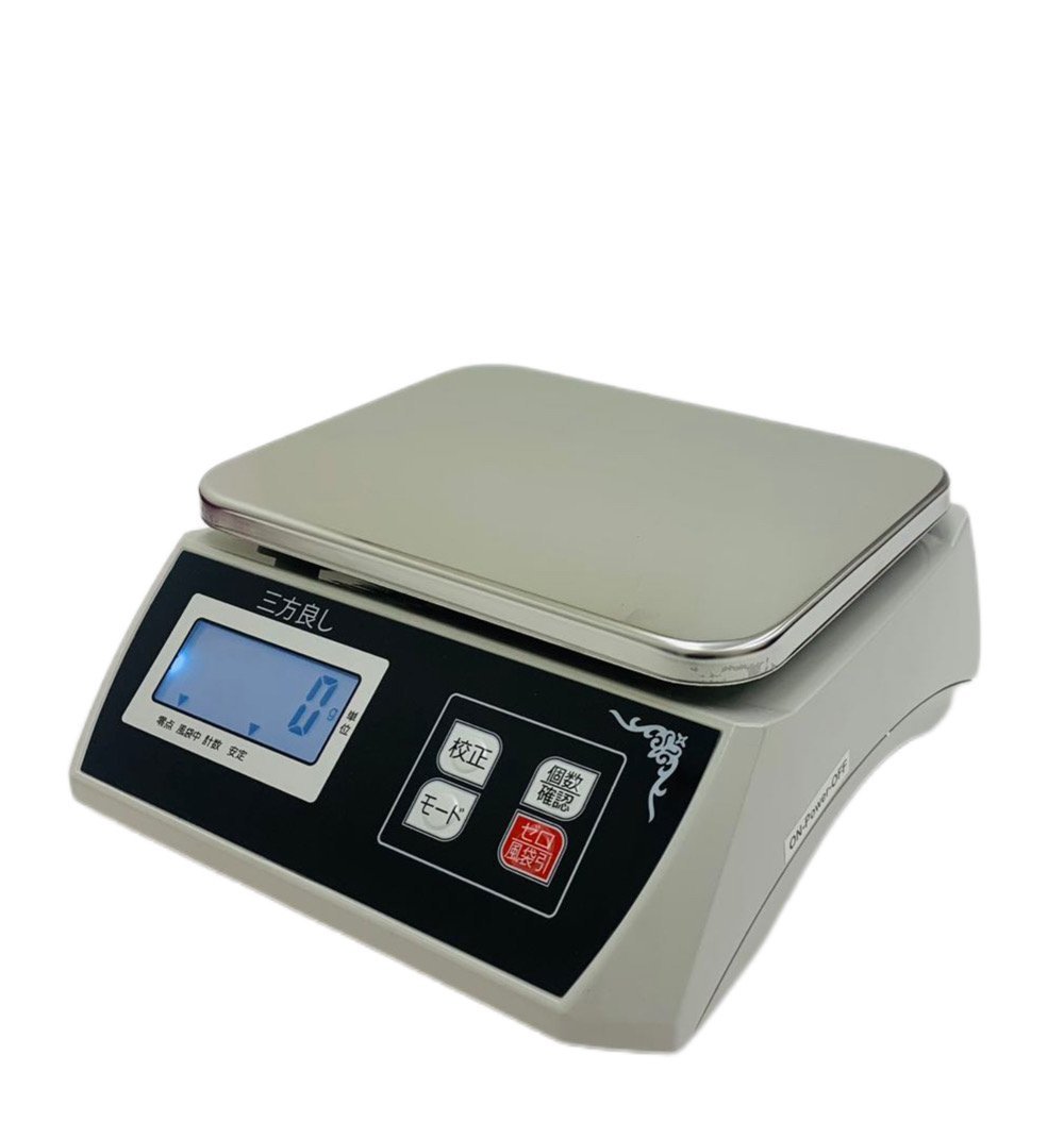 •液晶大画面LED表示 kg/g単位変換機能 水準器・風袋引き機能 ステンレス製(SUS304)計量皿仕様
