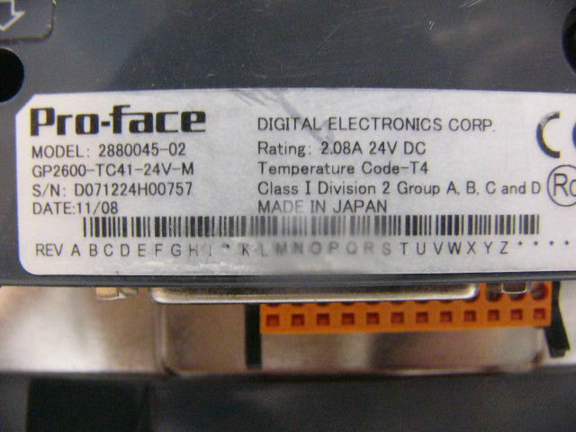 Proface社製のFA工業用タッチパネル 12.1型 SVGA/カラー GP2600-TC41-24V-M の中古動作保証品です。パネル面は概ね綺麗な状態です。写真はほぼ同等品の流用ものです。