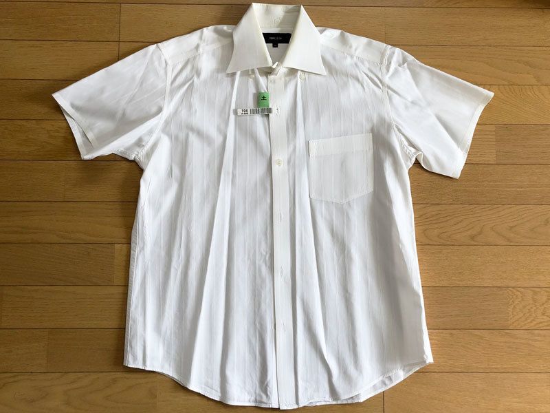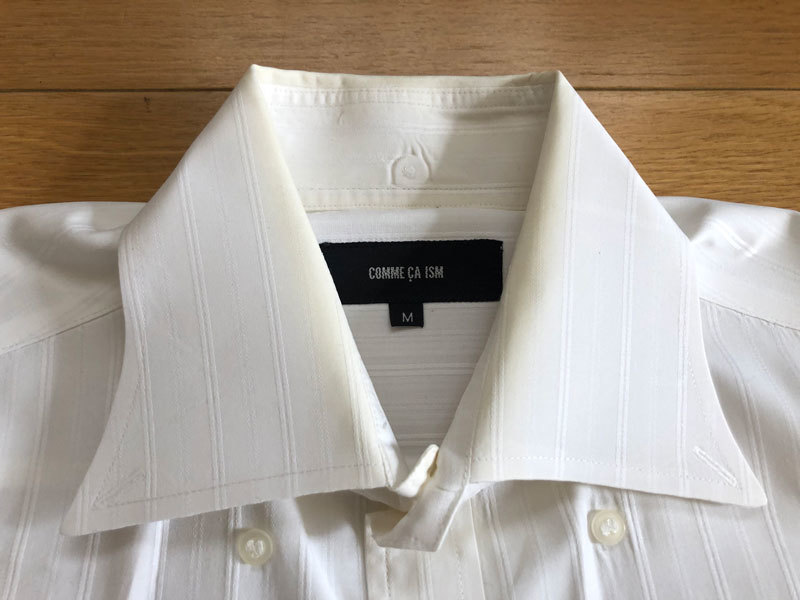 ■ 白 夏 クールビズ★COMME CA ISM コムサ ストライプ 半袖 BDシャツ ボタンダウンシャツ ワイシャツ クリーニング済★モッズ アイビー アメトラ ■ | |||||