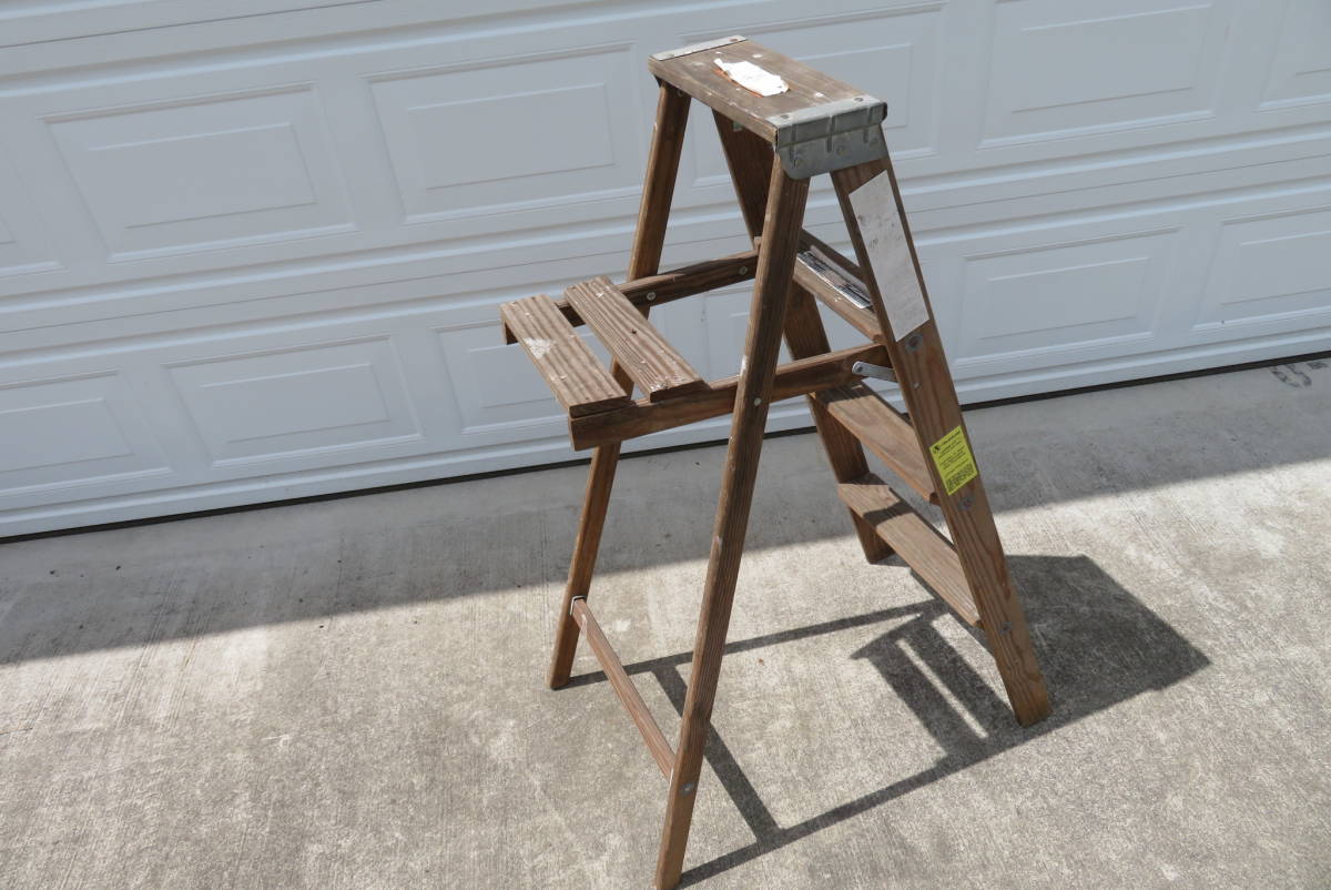 木製 ステップラダー ラダー 4ft 脚立 折りたたみ ディスプレイ 店舗什器 アメリカ製 USA ガレージ USA USED(A-272)