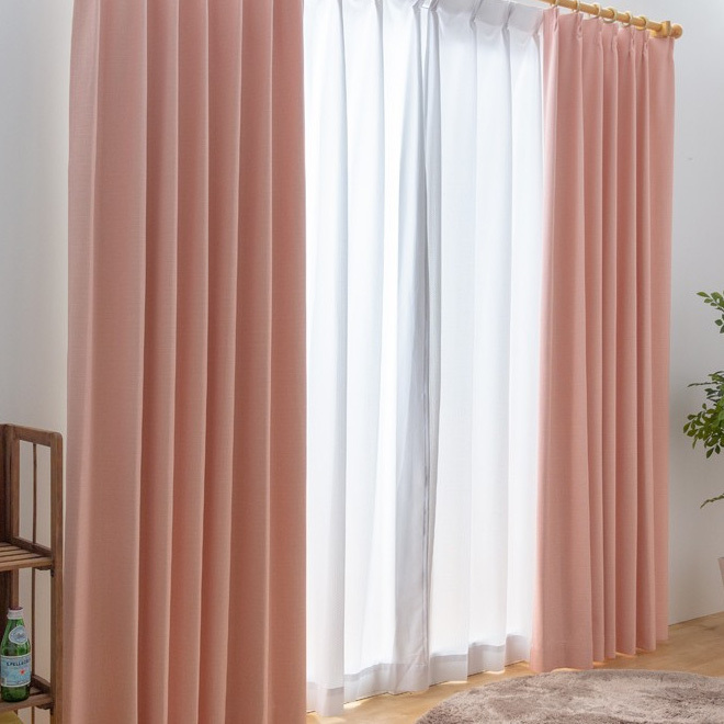 カーテン 幅300cm×丈200cm1枚 ピンク 完全遮光 遮光1級 省エネ 遮音 遮熱 断熱 保温 日本製 形状記憶加工付 246サイズ展開