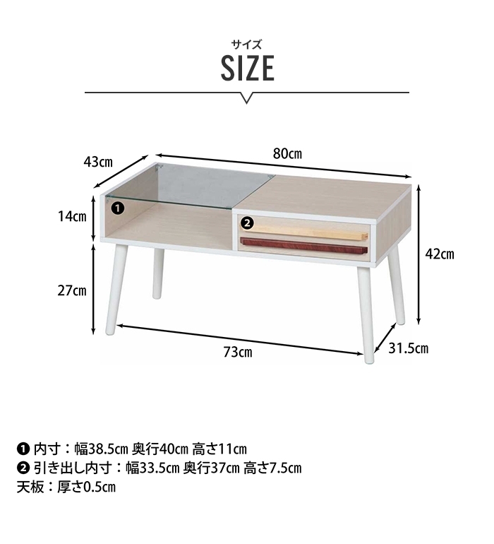 [全体]約幅80×奥行43×高さ42cm [天板強化ガラス厚み]約5mm |