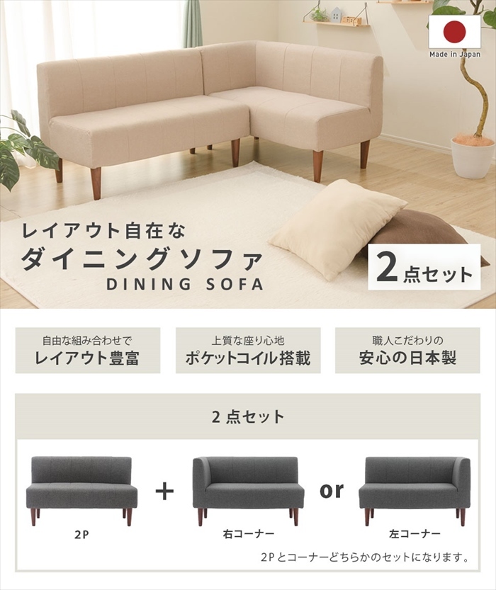 | ダイニングソファ レイアウト ポケットコイル 日本製 組み合わせる コンパクト リビング ダイニング アパート マンション 家族 ファミリー 職人仕上げ 上質 座り心地 自由な組み合わせ 座る 椅子 |