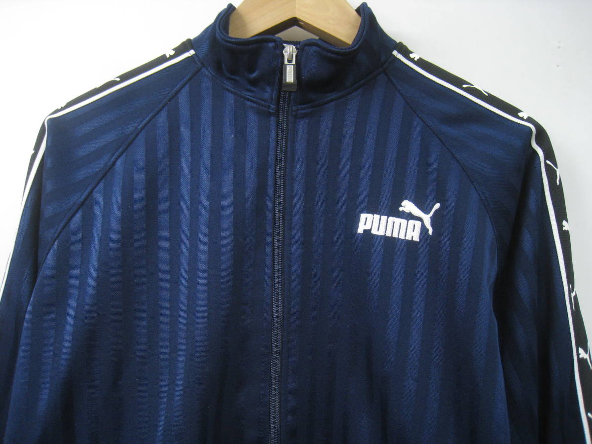 PUMA プーマ ジャージ 上着 ジャケット 刺繍ロゴ プリントロゴ ストライプ 紺 ネイビー サイズ160