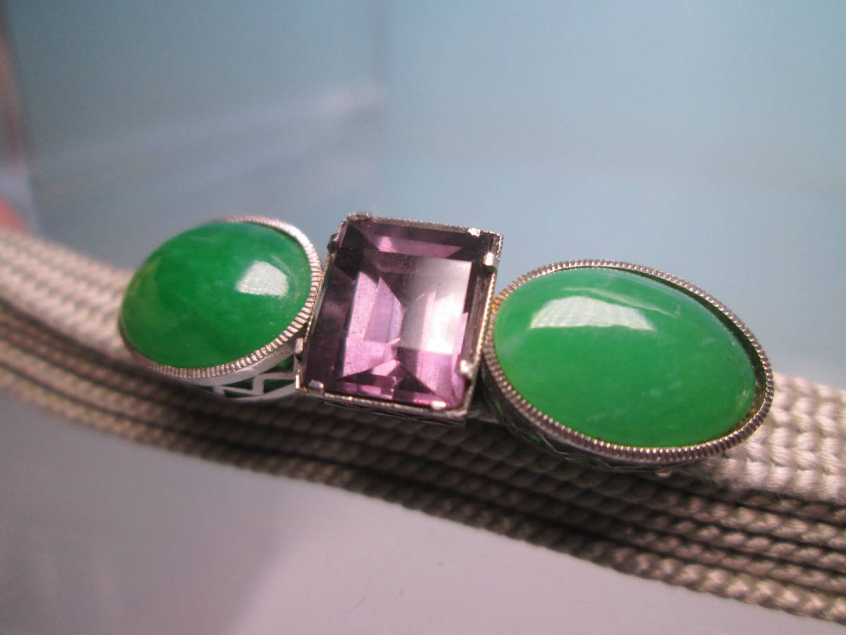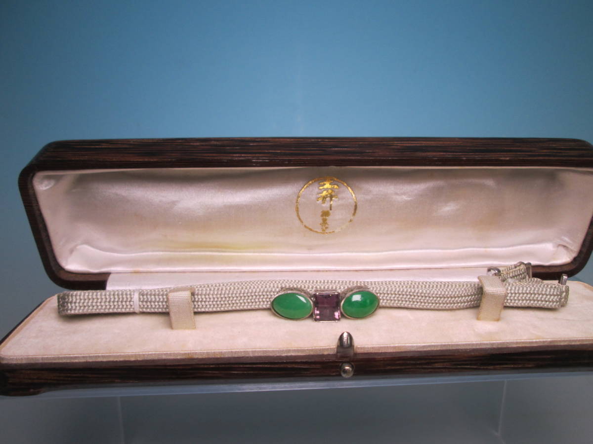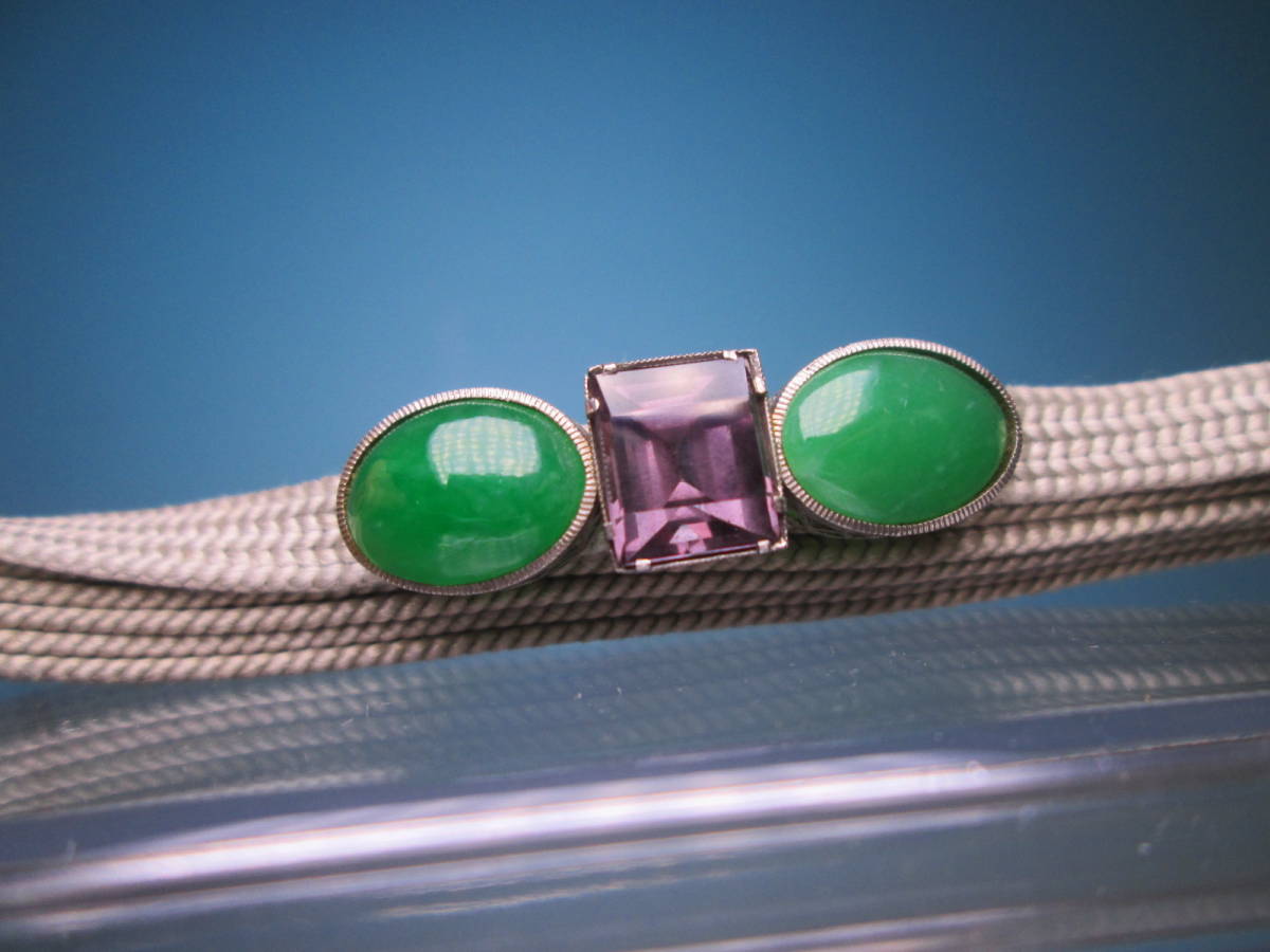 【江月】アンティーク・{土井}本翡翠/紫水晶の帯留め 鉄刀木 唐木箱付