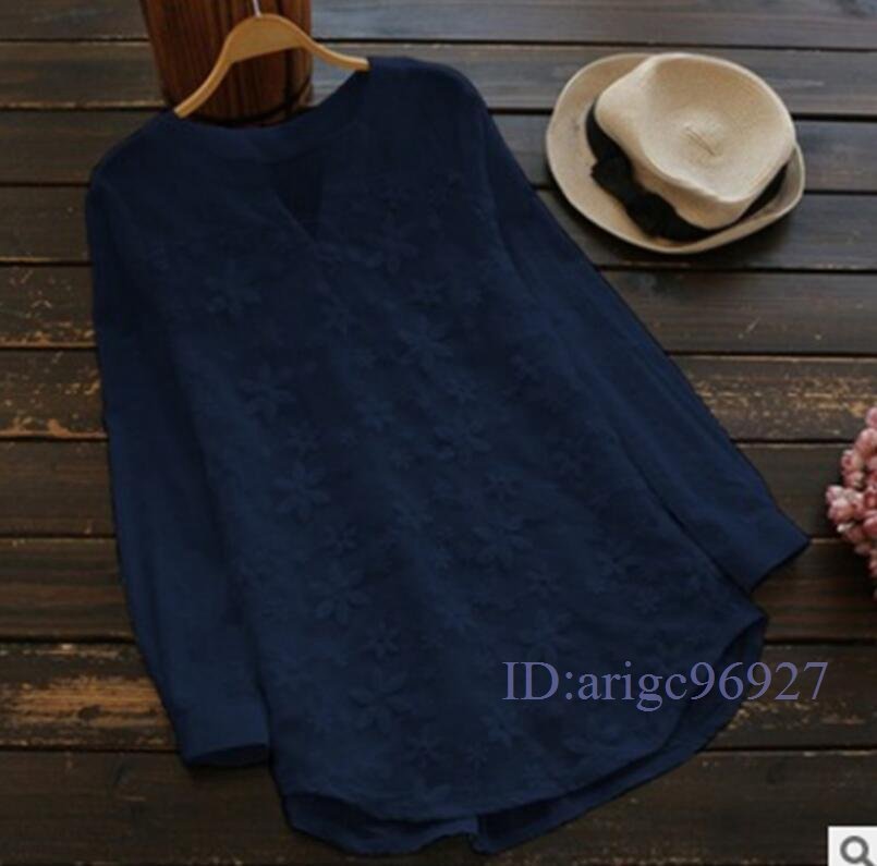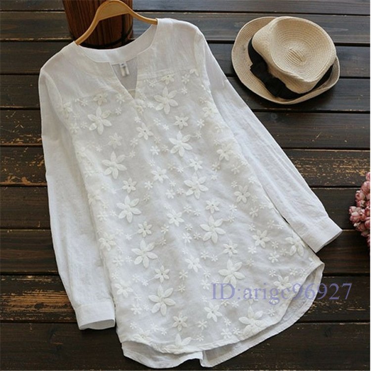 R153☆新品秋 レディース 刺繍レース付き 切り替え ゆったり大きいサイズ 長袖シャツブラウス チュニック 選択/Lサイズ
