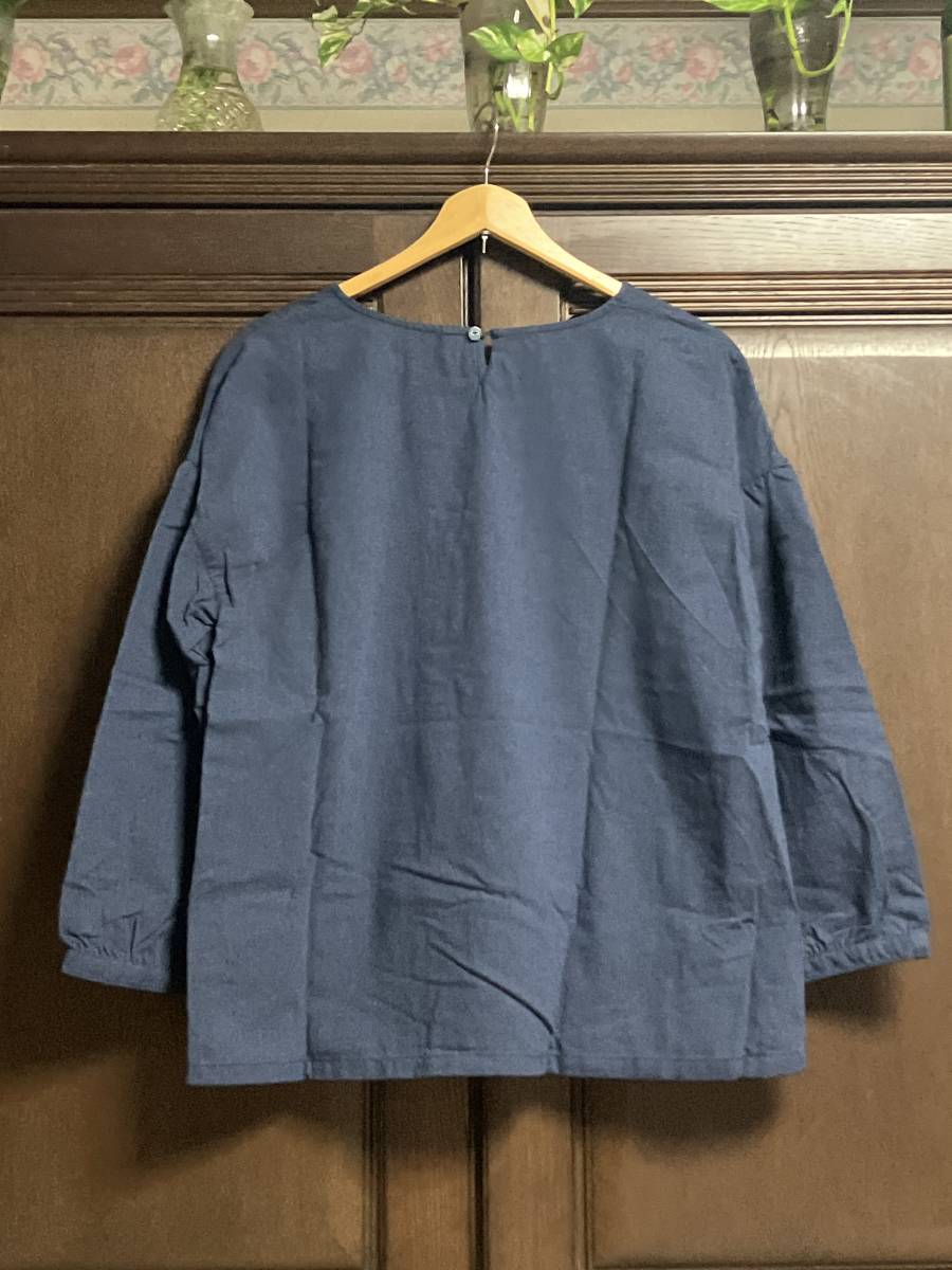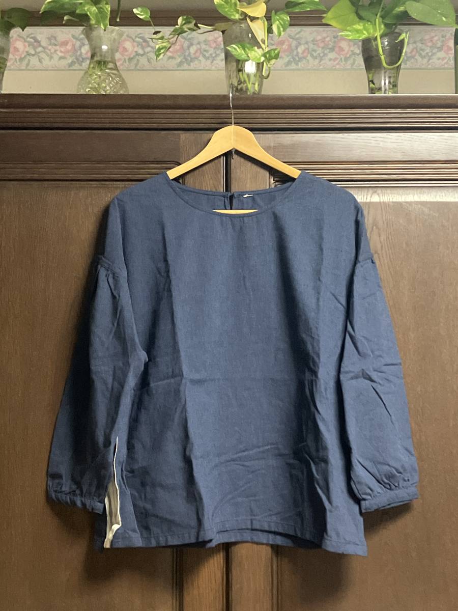 リネンのようなさらっとした素材です。脇のスリットがワンポイントです。お袖がラグラン袖でとっても楽々です。1番お安い送料にて発送いたします。