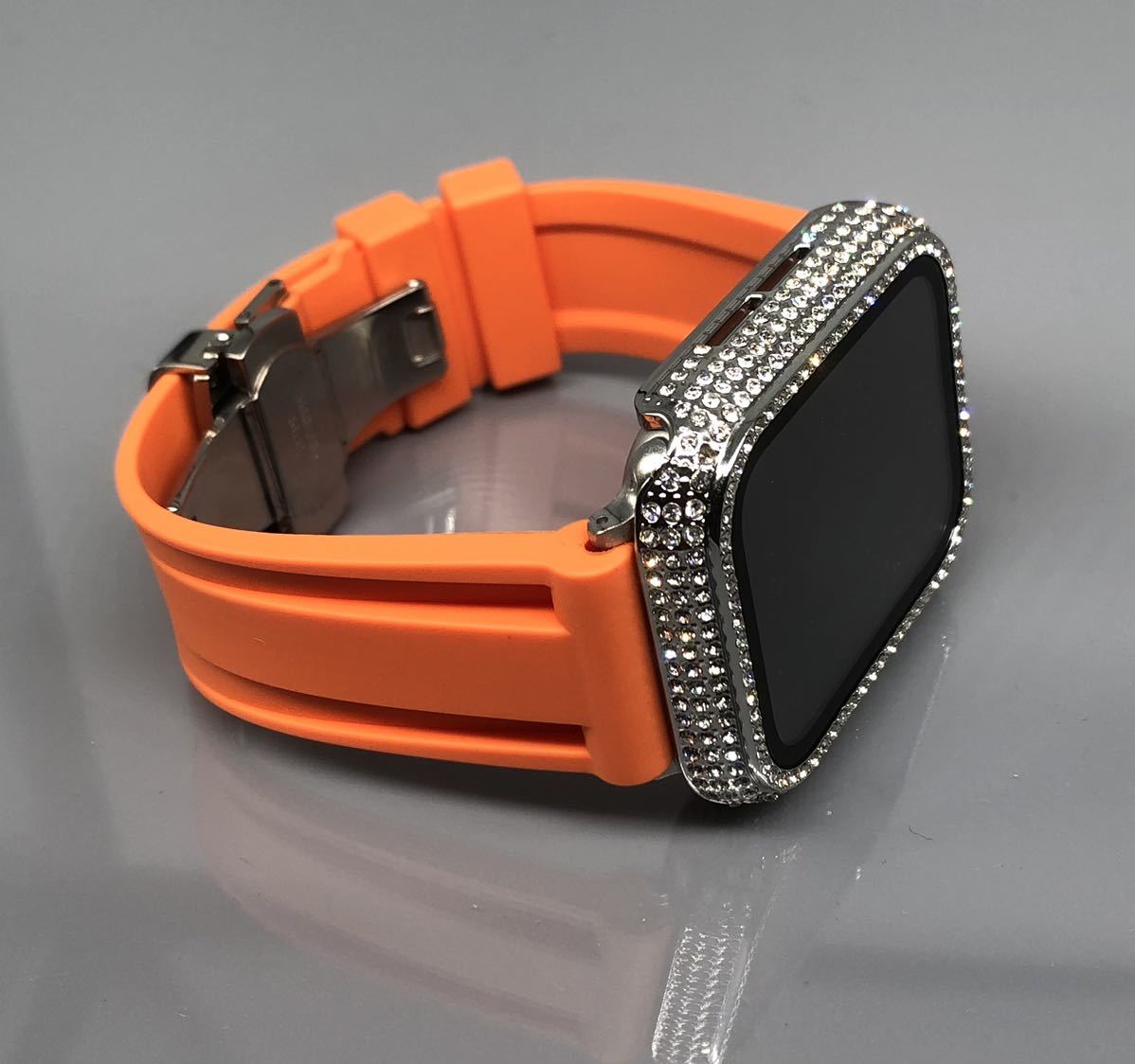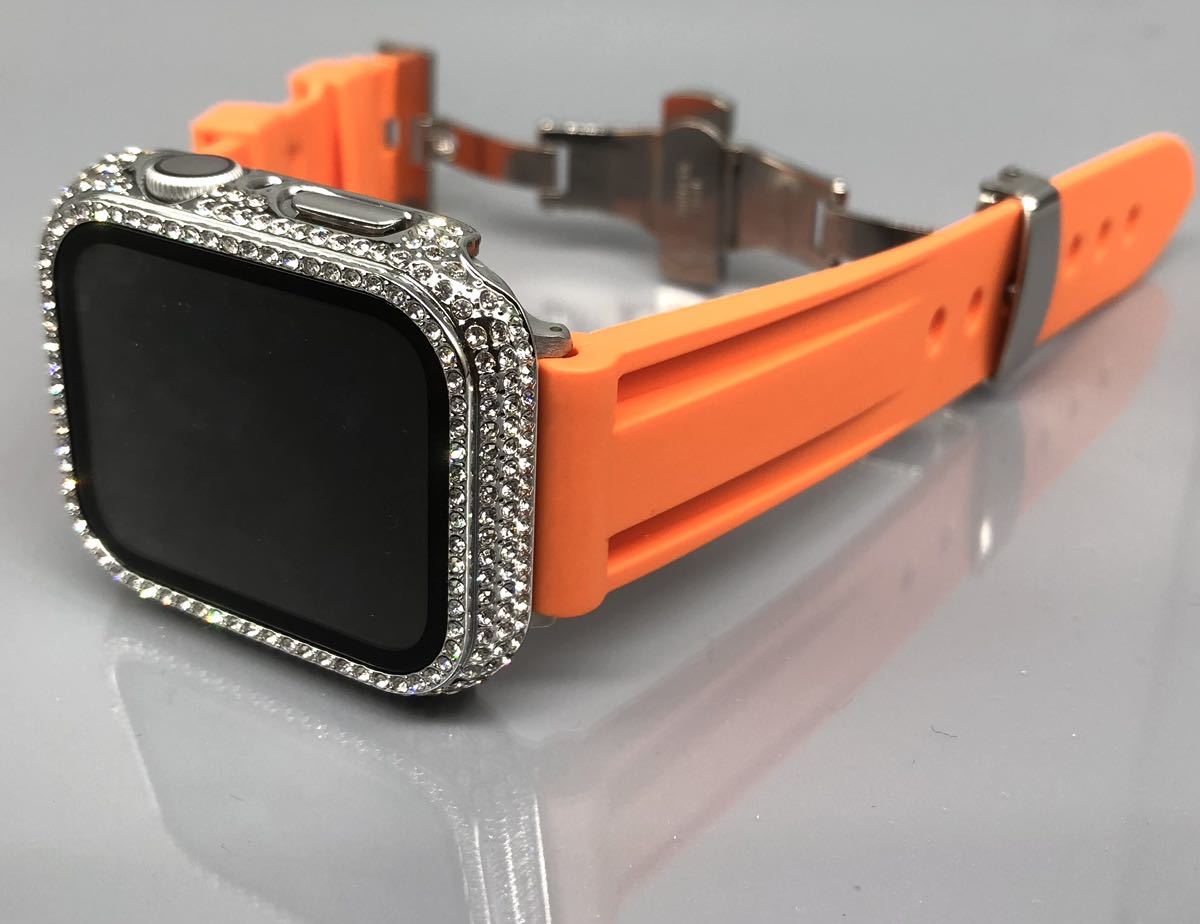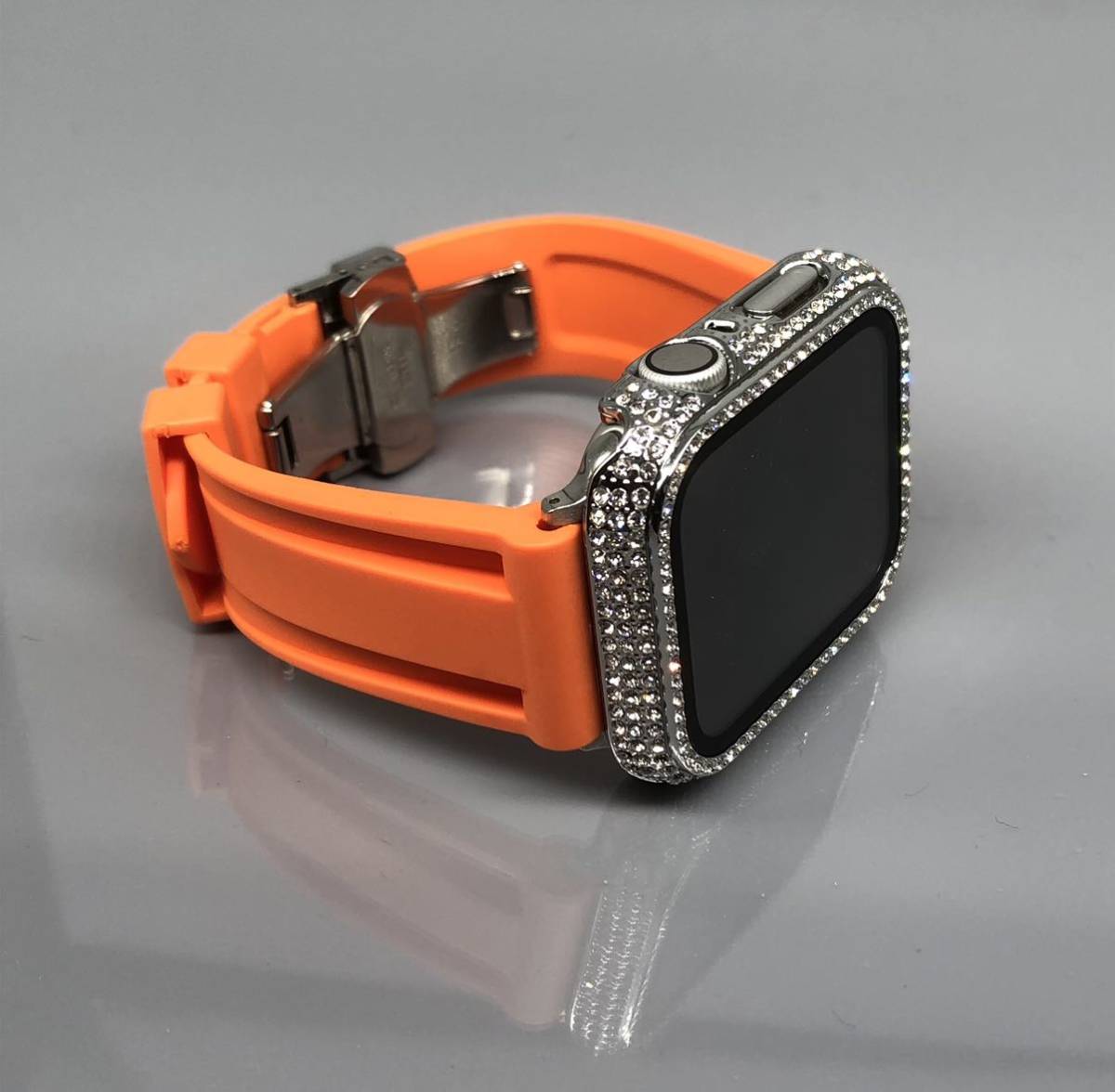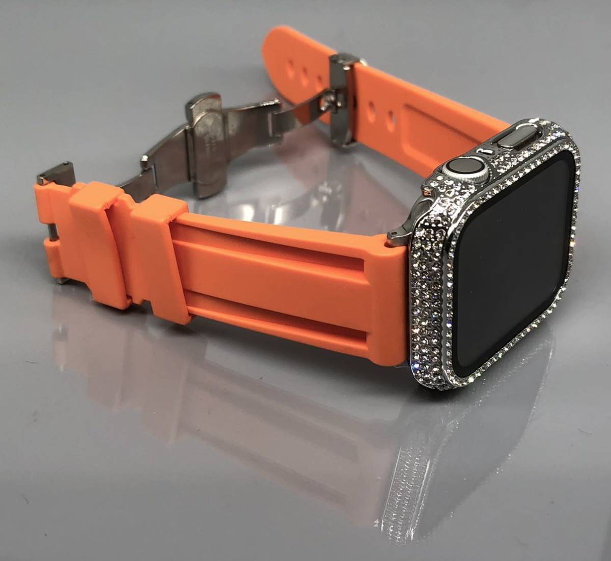 Apple Watch用 厚いラバーベルト&glassパヴェ仕様カバーセット