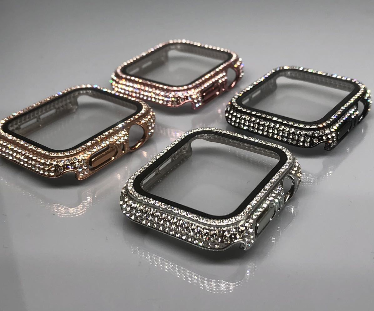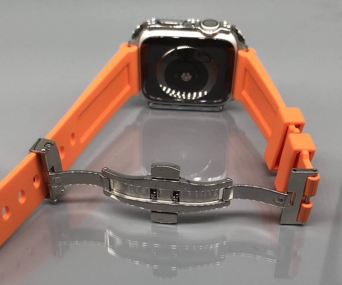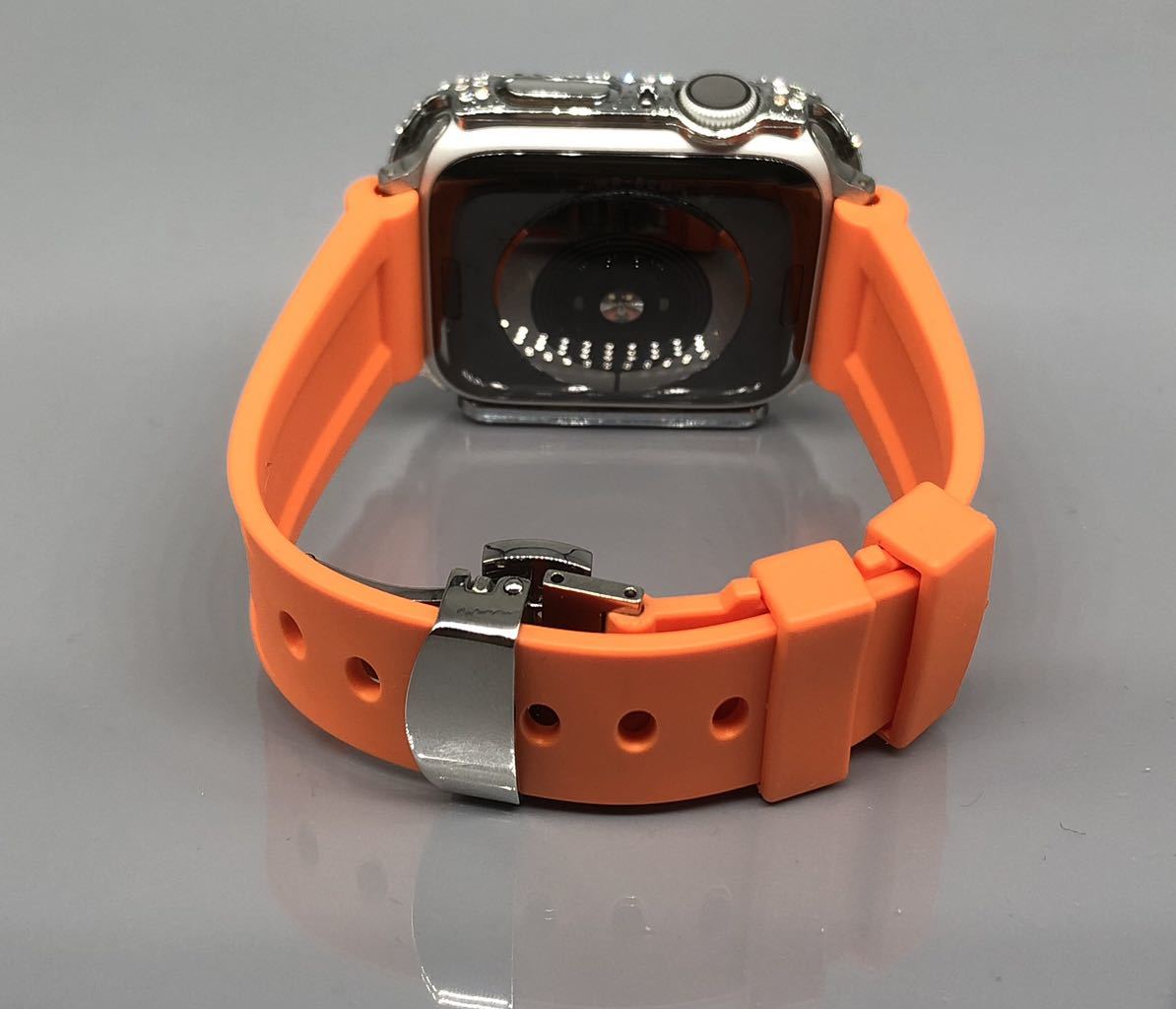 Apple Watch用 厚いラバーベルト&glassパヴェ仕様カバーセット