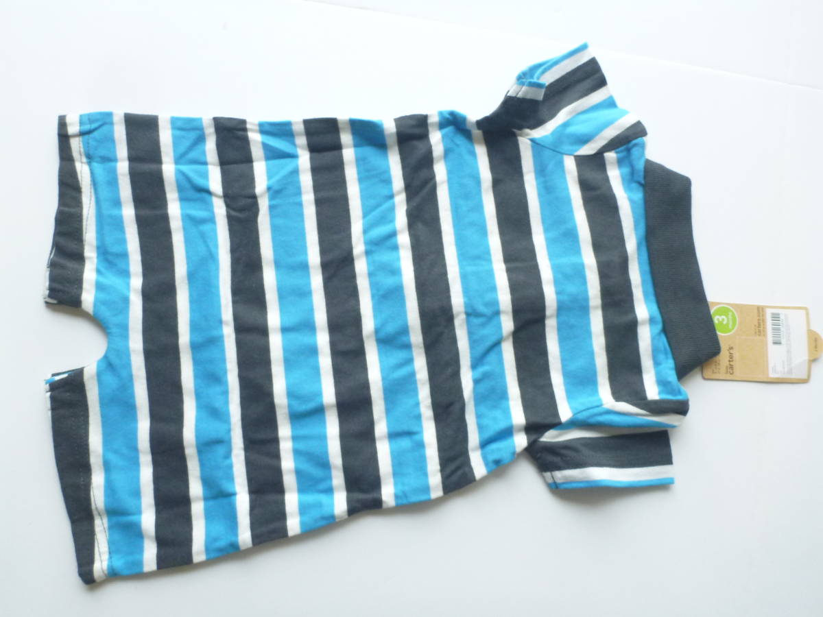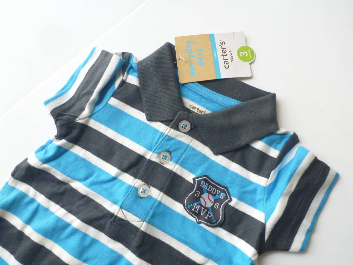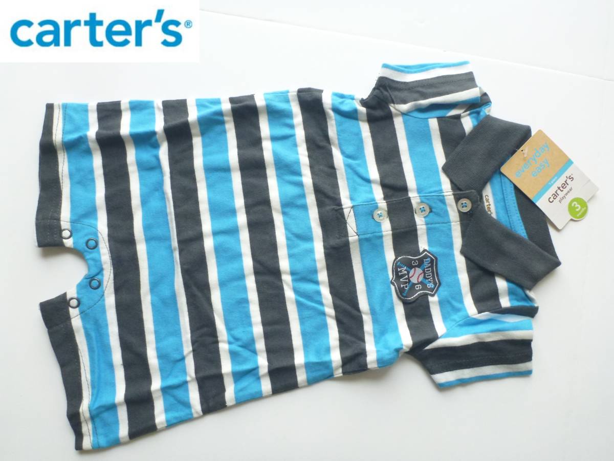新品 carter's カーターズ ★アメリカ人気ブランド 水色×白×グレー 半袖 ショートオール 3m 50