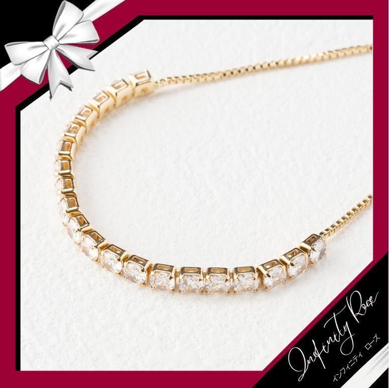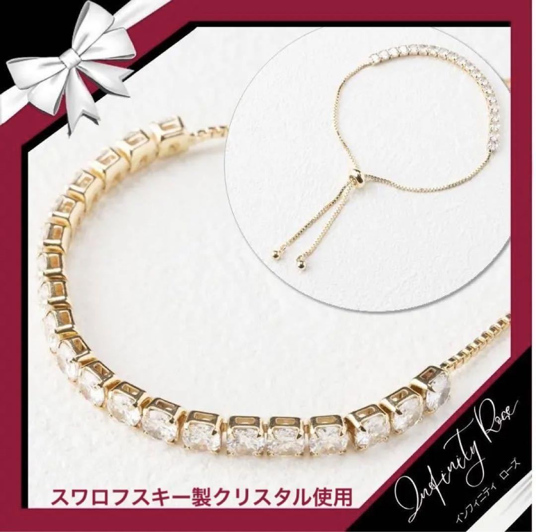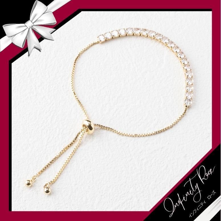 (6040)ゴールド×クリア 高価爪留めブレスレット 引っ張って調節 スワロフスキー製クリスタル