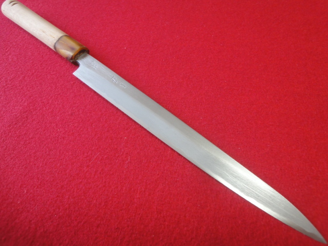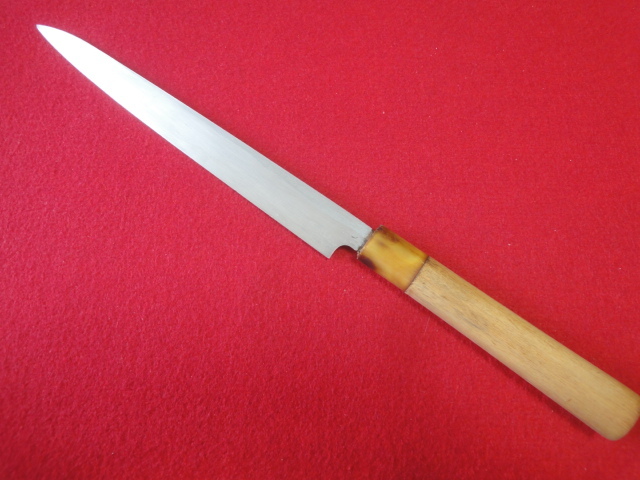 【正本】刺身包丁 刃渡23㎝ 全長38㎝ 峰厚3.5mm ※片刃 中古品 全国一律送料1100円