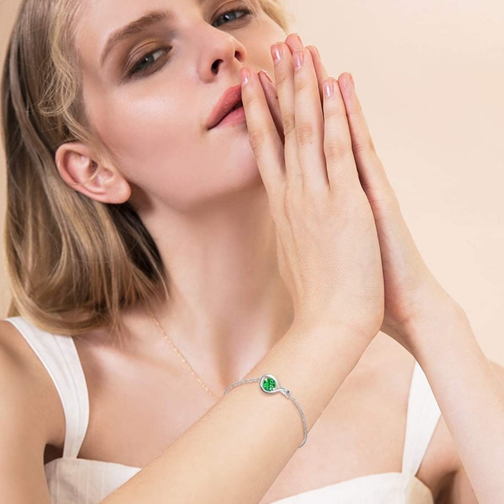 人気のしずくモチーフエメラルド誕生石ブレスレットは優雅で上品な印象を与えます。ペンダントの中央には、天然エメラルドが嵌めこまれていて、ベーシックなデザイン、最も正確なサイズと完璧なカットで、しっかりとした存在感で、ダイヤモンドのような眩しい光を反射します。