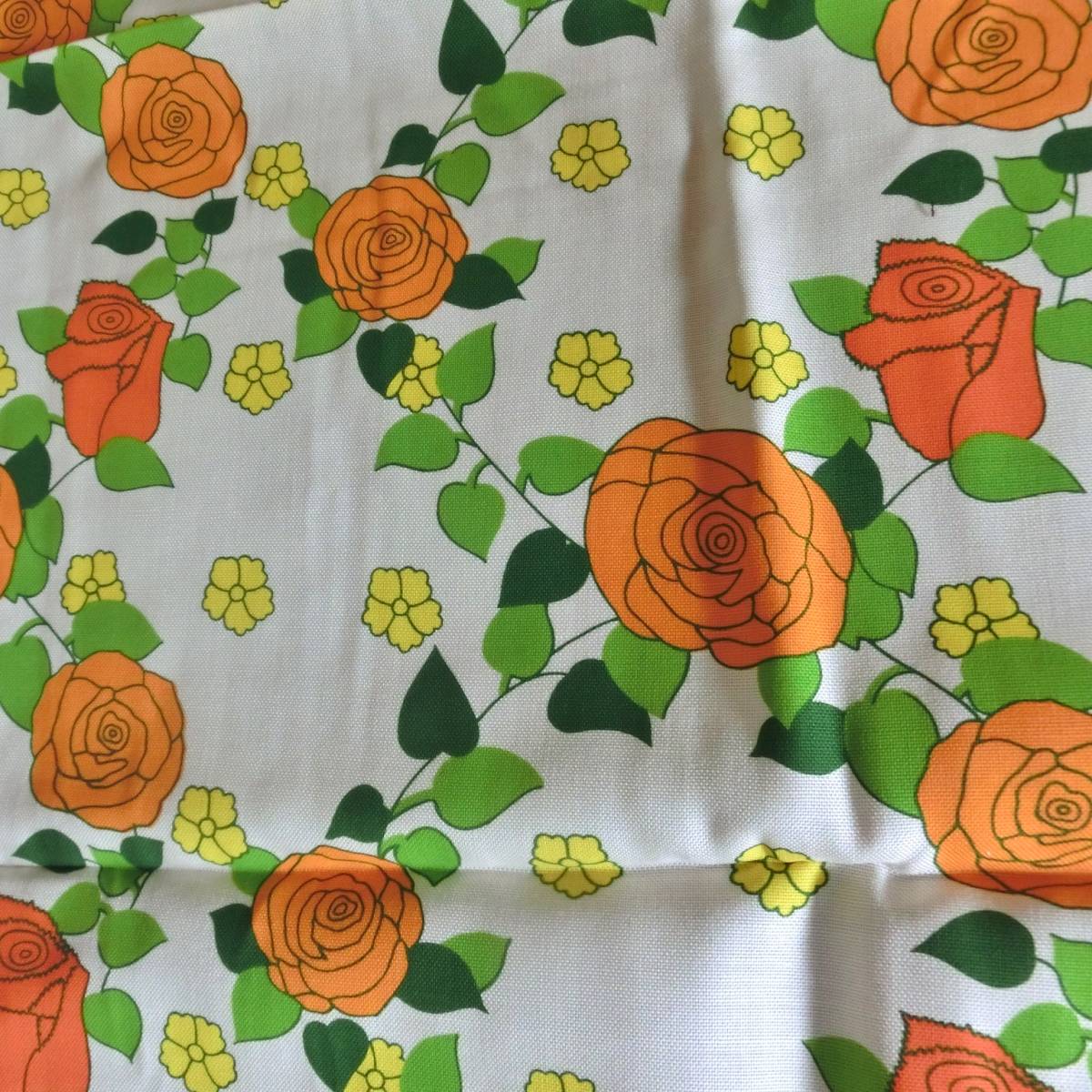 布 未使用 薔薇柄 ハギレ 1 オレンジ はぎれ 5枚入 布地 72x106