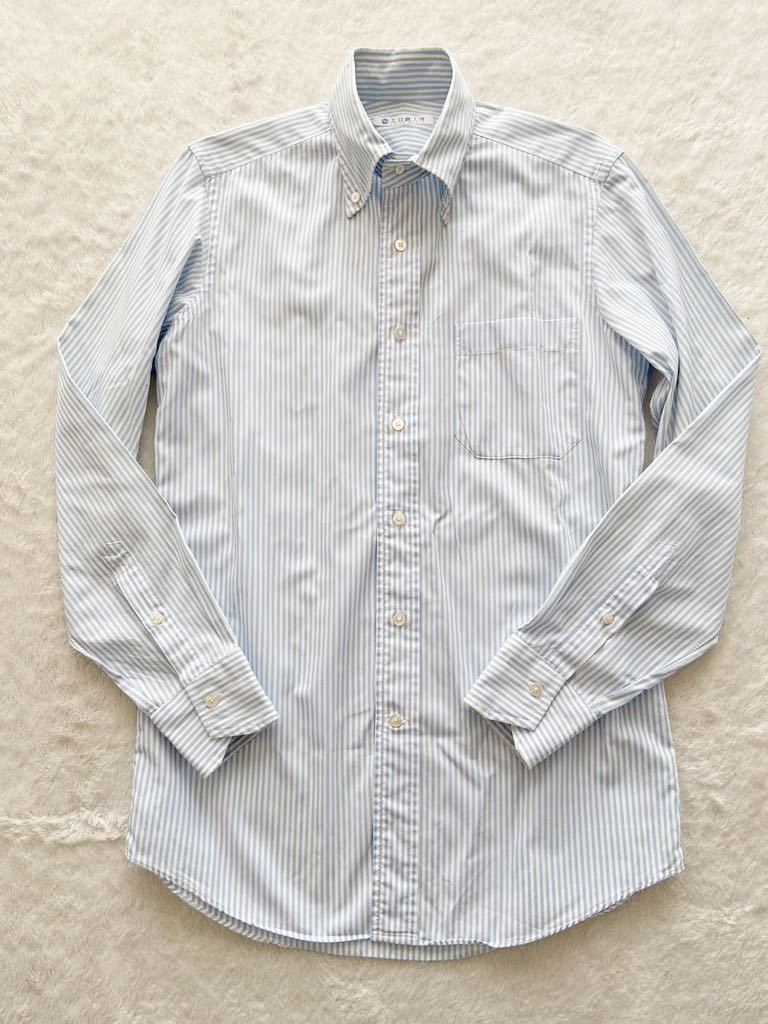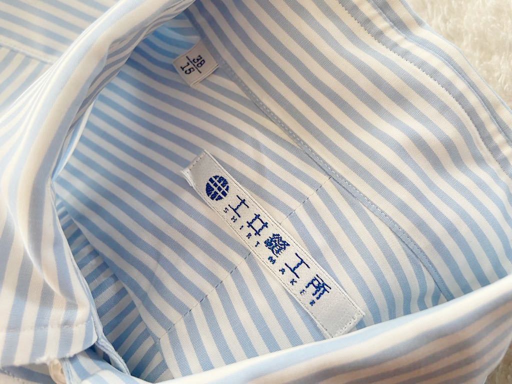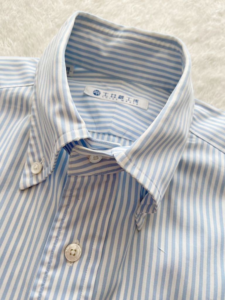 土井縫工所 size38-15 長袖シャツ ストライプ 水色 白 (KI)