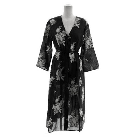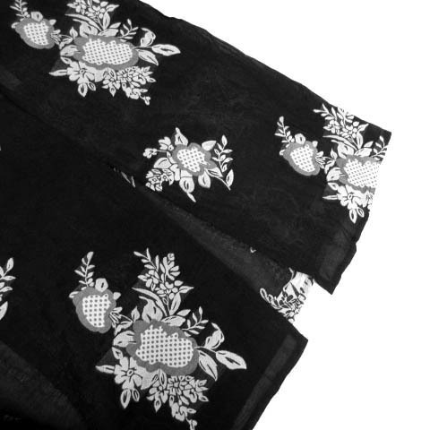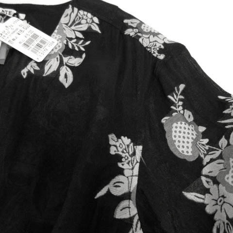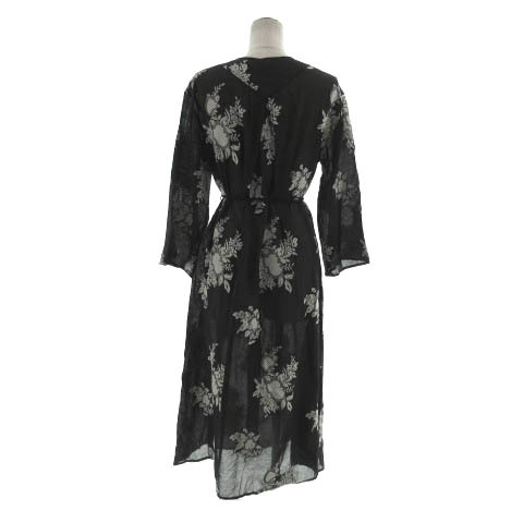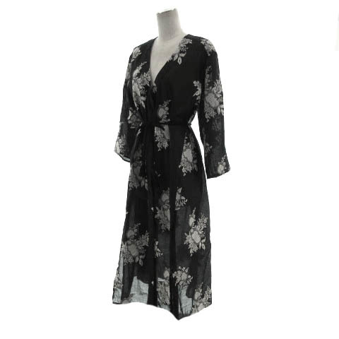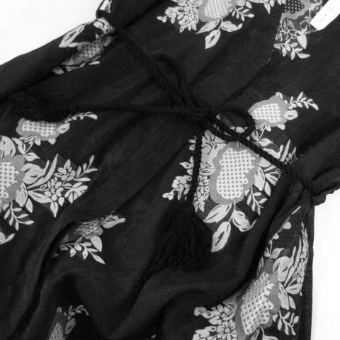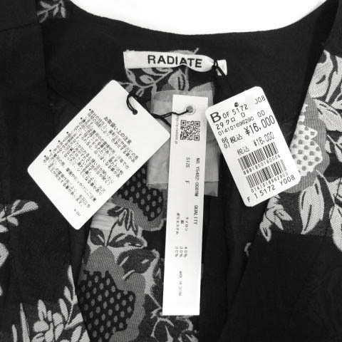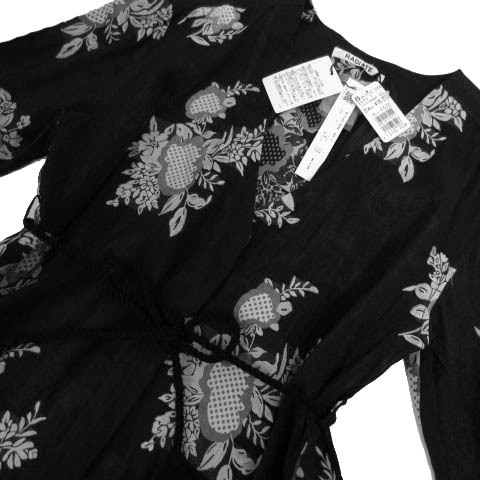 未使用品 ラディエイト RADIATE ワンピース V襟 長袖 ミディ丈 リボンベルト タッセル 花柄 ブラック 黒 グレー ホワイト 白 F