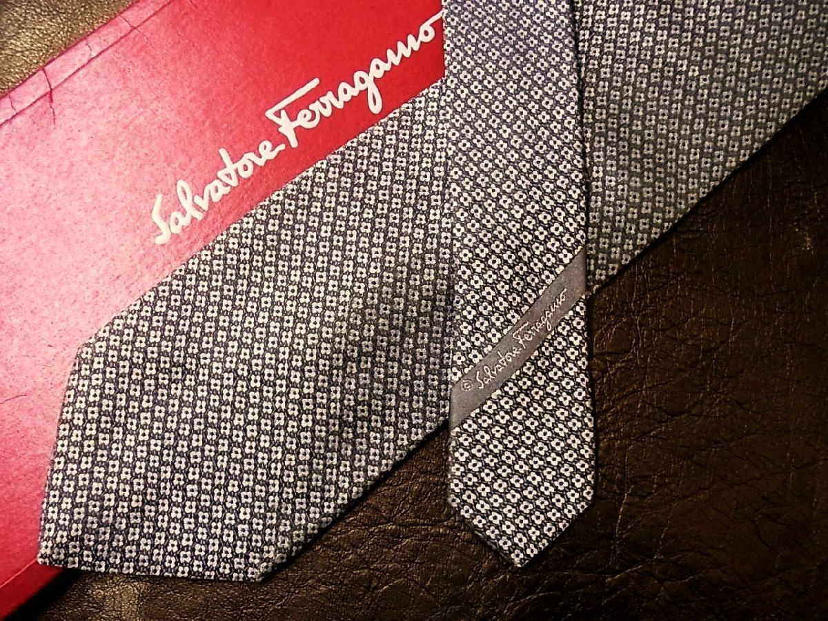 ★良品★3R05304【Ferragamo】フェラガモ「花 小花 柄」ネクタイ