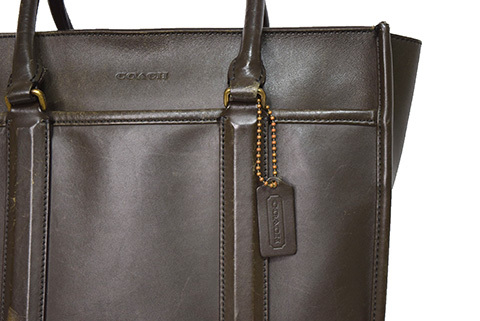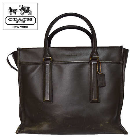 【大型】90S ヴィンテージ オールドコーチ メンズ ブリーフケース トートバッグ レザーバッグ コーチ OLD COACH 中古 モスグリーン系 FA0970