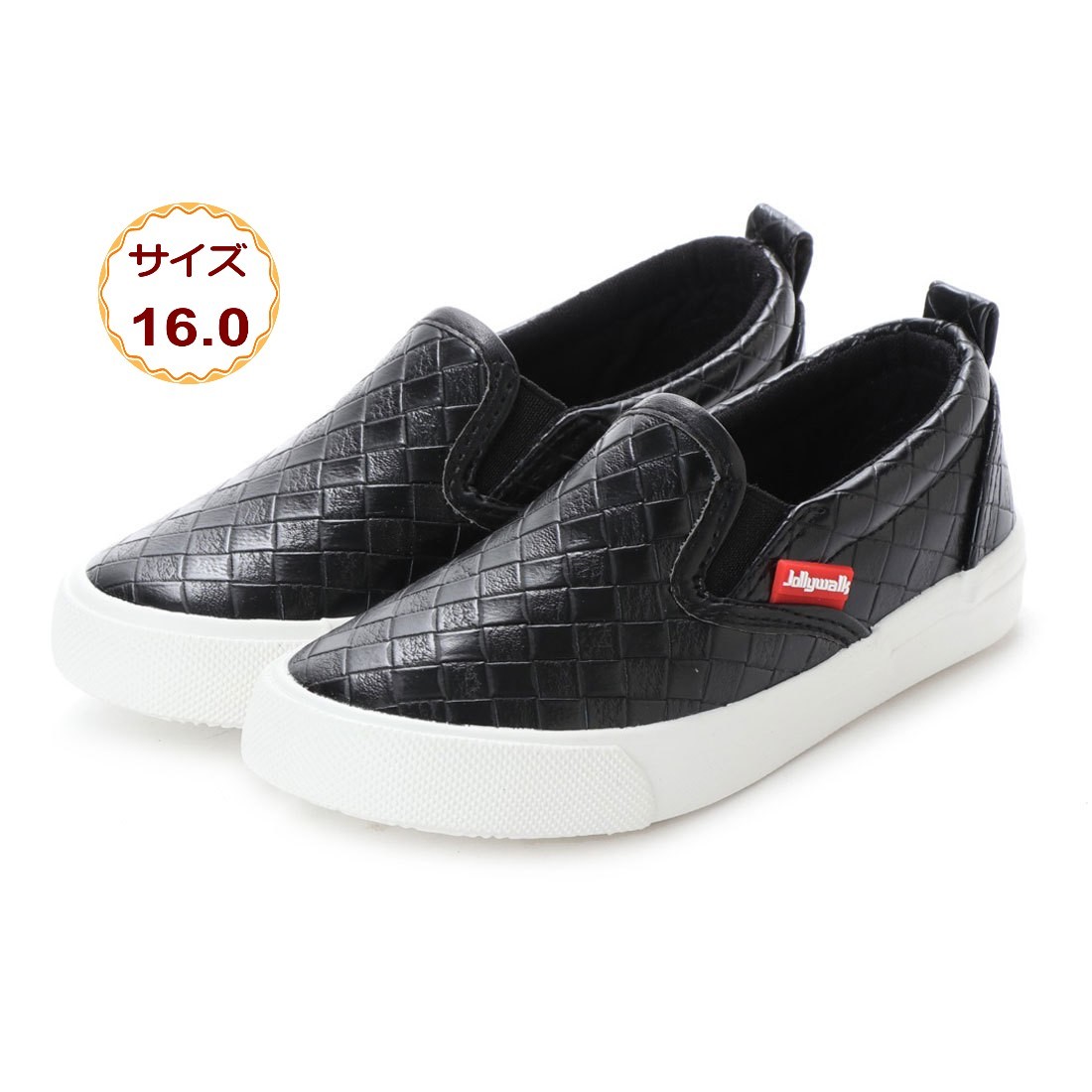 16.0cm レザータイプ ジョリーウォーク Jolly Walk 子供用 カジュアル スニーカー 保育園 幼稚園 小学校 女の子 JW812-blk-160