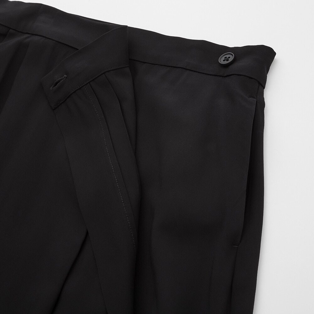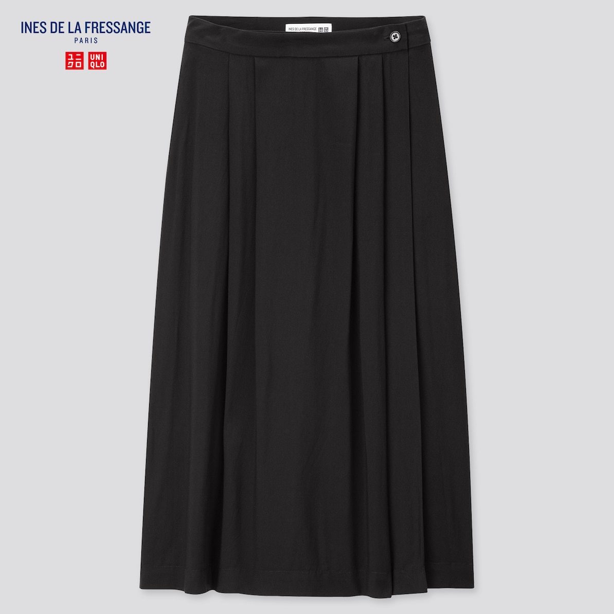 【新品・W70・ブラック】ユニクロ×イネス INES DE LA FRESSANGE レーヨンラップスカート 黒 無地 しなやかに流れ揺れる裾が美しい。