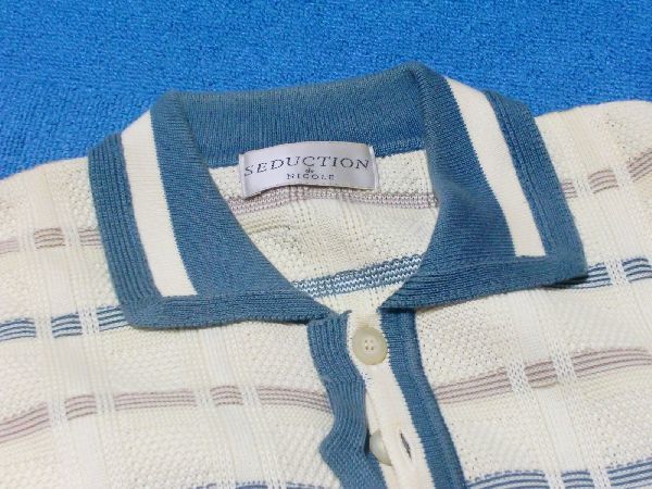 中古★セデクション ニコル SEDUCTION NICOLE LL位 綿100% アイボリー クリーム系 サマー ニット 半袖 ポロシャツです。