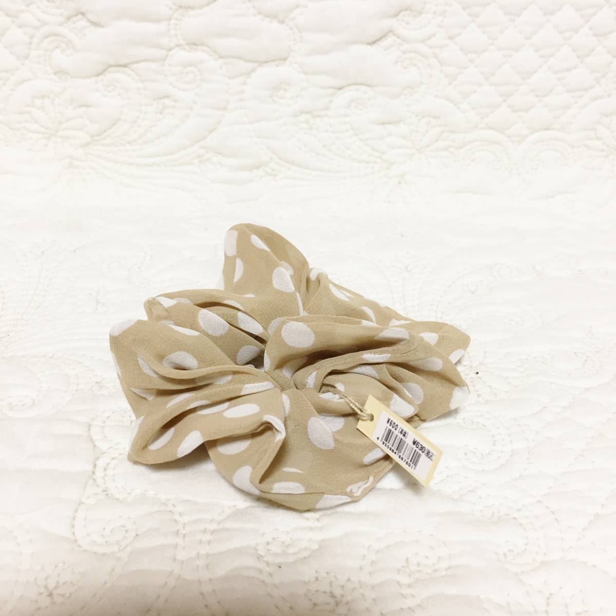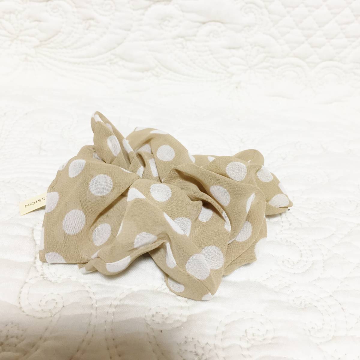 ★新品 タグ付き 水玉/ドット ベージュ シュシュです。