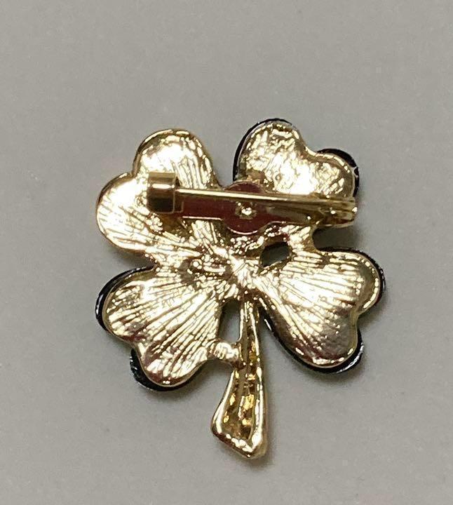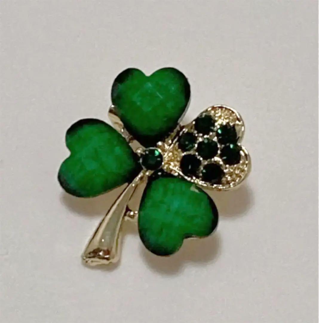幸せの四つ葉のクローバーのブローチ 緑 ラインストーン ゴールド clover 葉っぱ 緑 植物