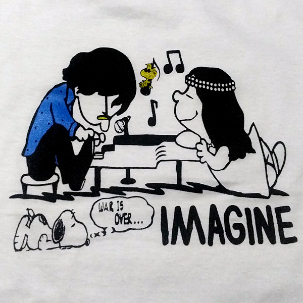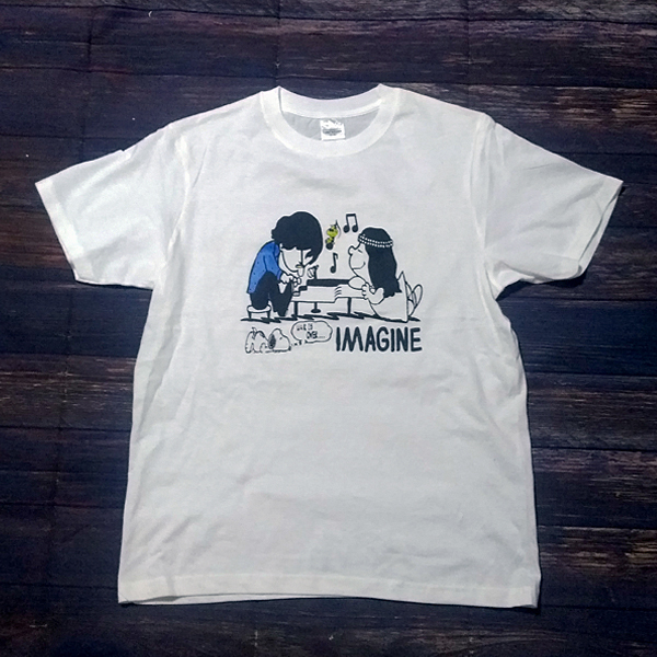 送込【IMAGINE】ジョン&ヨーコ / Peanuts風 / ホワイト★選べる5サイズ/S M L XL 2XL/ヘビーウェイト 5.6オンス