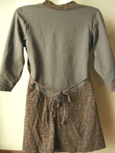 くすんだブラウンがかった薄いグレーとブラウンのプリント柄です。
