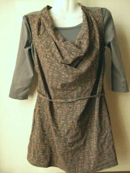 11-新品703■L■カップ付ドレープチュニック*ブラウン