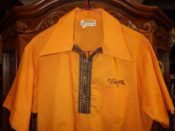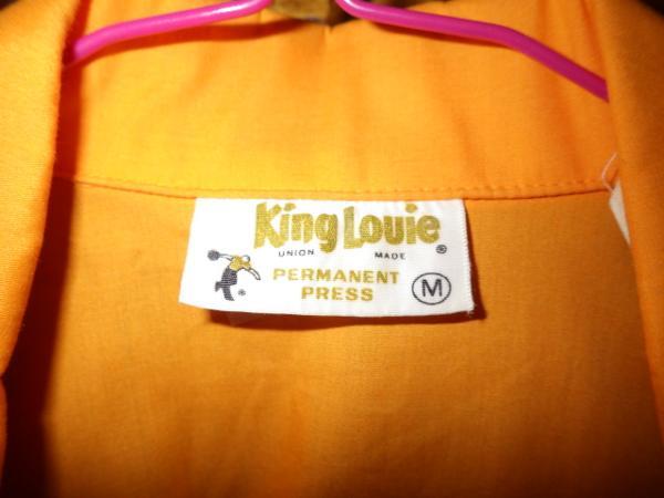 70'Sビンテージ♪King Louieのボーリングシャツです♪サイズはM、着丈:68、身幅:59、袖丈:24、肩幅:43cmくらいです♪カラーは紺のオレンジ、素材はコットン♪腰と腹部に薄汚れ、右腕に小汚れ、フロントジッパーに酸化による変色あり(開閉スムーズ)、他は特に目立つダメージありません♪お好きな方、宜しくお願いします♪