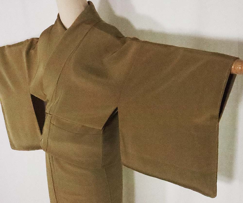 寸法 | 身丈:約160cm(肩上から裾までの採寸) 身丈:約156cm(背筋後襟下より裾までの採寸) 裄丈:約68cm(裄は出ないと思います) 袖丈:約49cm 袖幅:約34.5cm 後幅:約29cm 前幅:約24cm 両肩の縫い代:約cmずつあります。 適応身長約151~160cm (実寸で採寸していますが多少の測り間違いはご了承下さい) |
