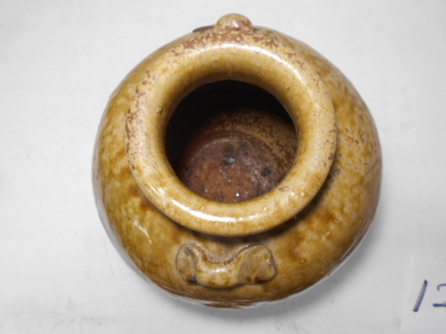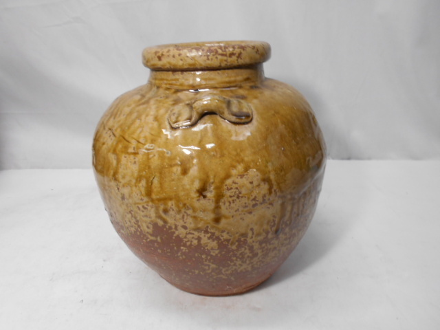 大雅堂1222 「真作」越前焼 双耳壷 灰釉薬 ビードロ状 状態良好 水漏れ無し 花器 本物保証 古道具古民家古民芸 越前蔵うぶだし