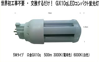 FUL9EX-L 100%工事不要 交換するだけ! LEDコンパクト蛍光灯 GX10q 5W 500Lm 6000K(白色)