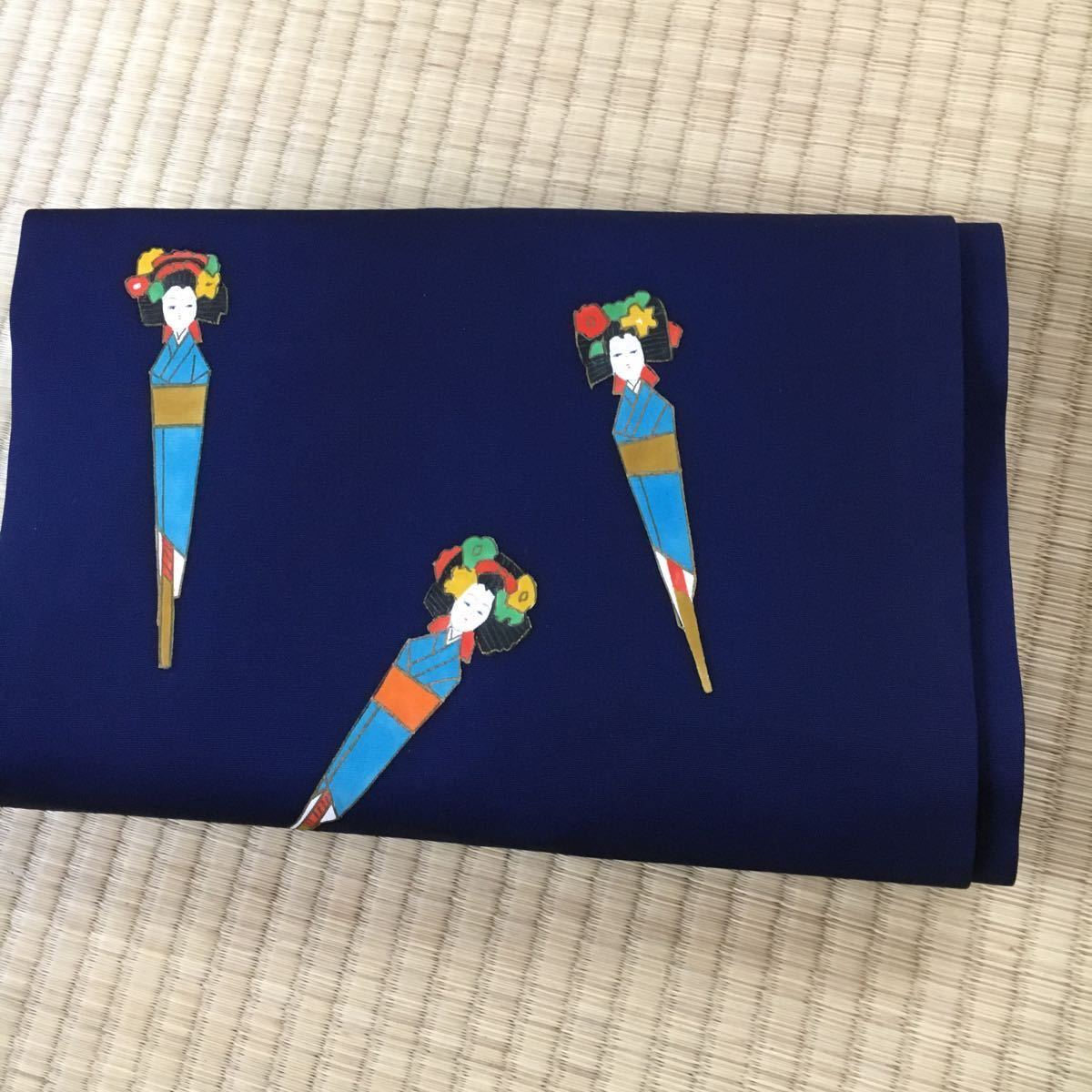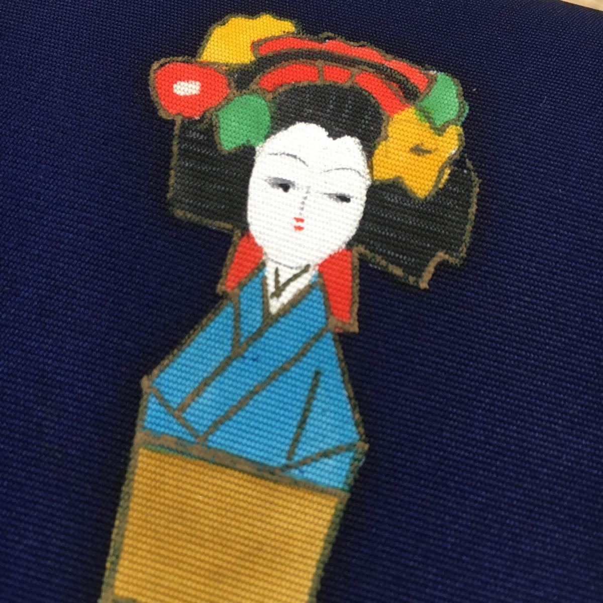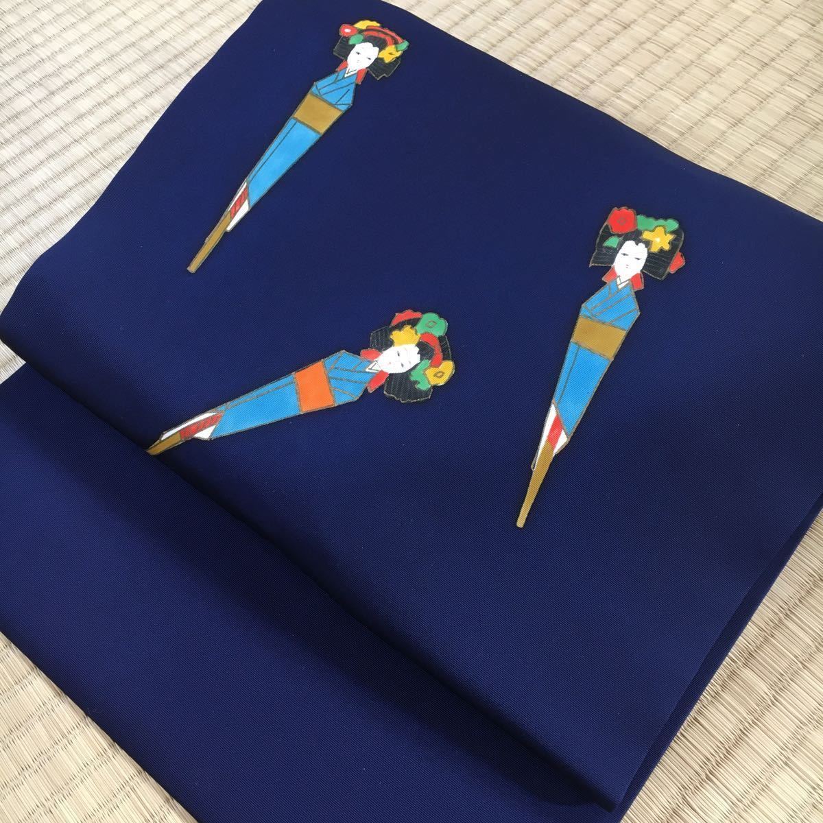 名古屋帯 紺地に姉さま人形 ay083