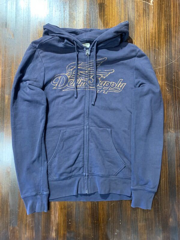 K083 メンズ パーカー DENIM&SUPPLY Ralph Lauren ラルフローレン ジップアップ フーディー ネイビー 紺 プリント 小さいサイズ / S (8)