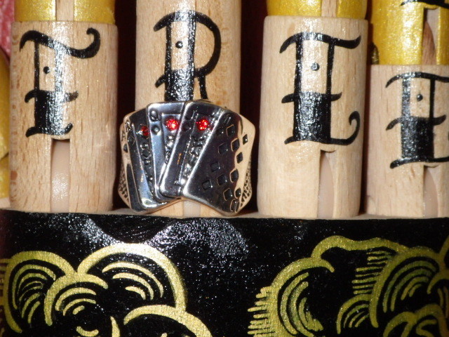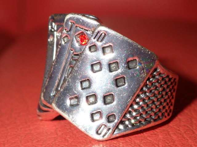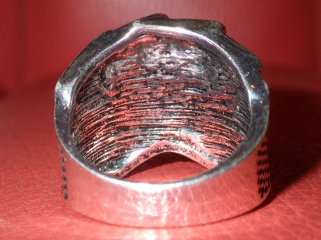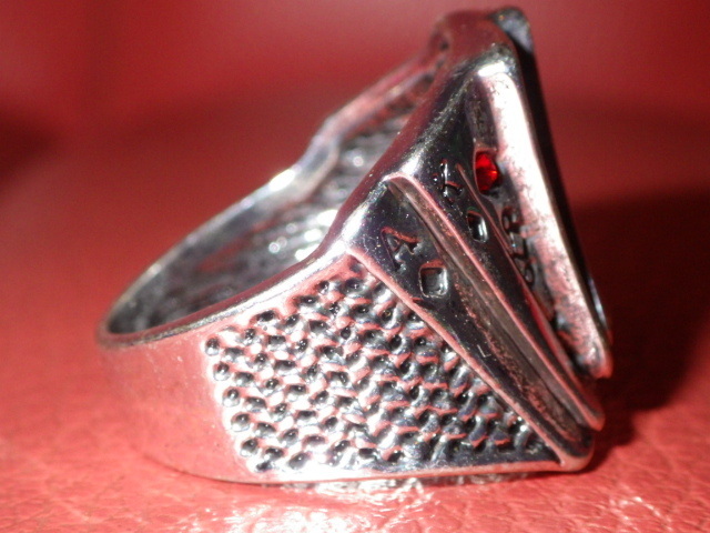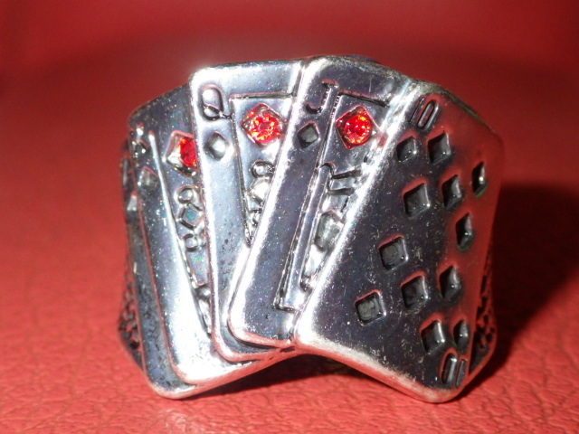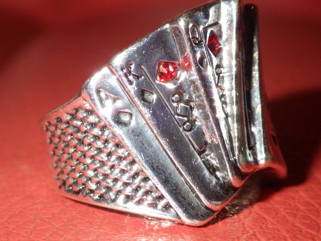 サイズは17号(指周り57.6mm)くらい、A(エース)から10の幅の長さで2.1cm、高さ1.9cmくらいです♪
