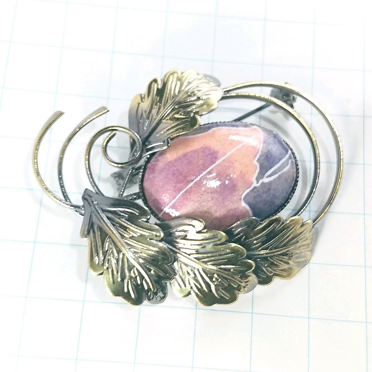 送料無料)ビンテージ☆七宝焼き 葉っぱモチーフ☆アンティークブローチ A06680