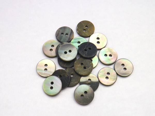 | ★商品説明★ | 非常に使いやすい まっ平らな型の2穴の黒蝶貝ボタンです。 珍しいマットな艶消しにしました。 艶消しにしたことで、高級感も増し、貝なのに温かさも出ています。 9mm. 10mm. 11.5mm. 13mm. 15mm. 18mm. 20mm のサイズがあります。 「貝 ボタン まっ平ら」 で検索してください。 洋服のボタン変え、趣味の手芸にと、大活躍な形です。 黒蝶貝は、古くから工芸、装飾に利用されてきた伝統的な素材です。 貝殻内側の虹色光沢の部分(真珠層)を切り取り、また削りだして使います。 木製品の象嵌(ぞうがん)細工や漆の螺鈿(らでん)細工のほか、 高級腕時計の文字盤や、指輪、ネックレス、カフスなど装身具などにも使われます。 とても上品な黒銀色ですが、見る角度や光の加減で微妙に色が変化します。 天然素材ならではの奥深い味わいを、ぜひお楽しみください。 | ||