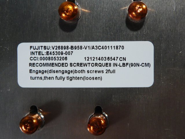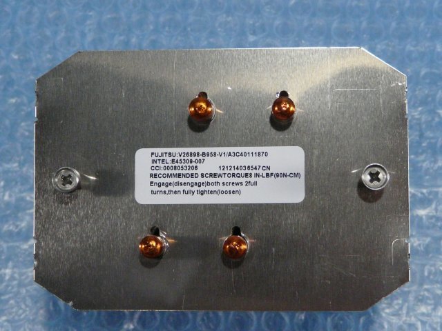 Fujitsu PRIMERGY RX600 S6 の CPU用 ヒートシンク クーラー / INTEL:E45309-007 V26898-B958-V1/A3C401118710
