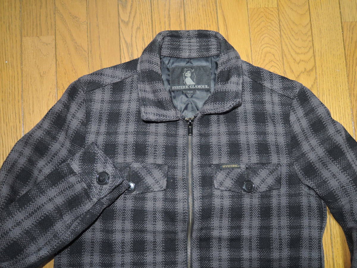 HYSTERIC GLAMOUR ヒステリックグラマー チェックネル ジャケット S 黒灰 ウール バッファロー /