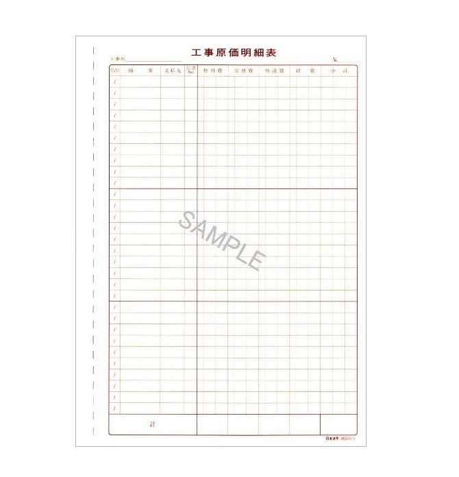 工事原価明細表が30枚入っておりますので、お使いいただいている工事原価明細表が足りなくなった際の補充用としてお使いください
