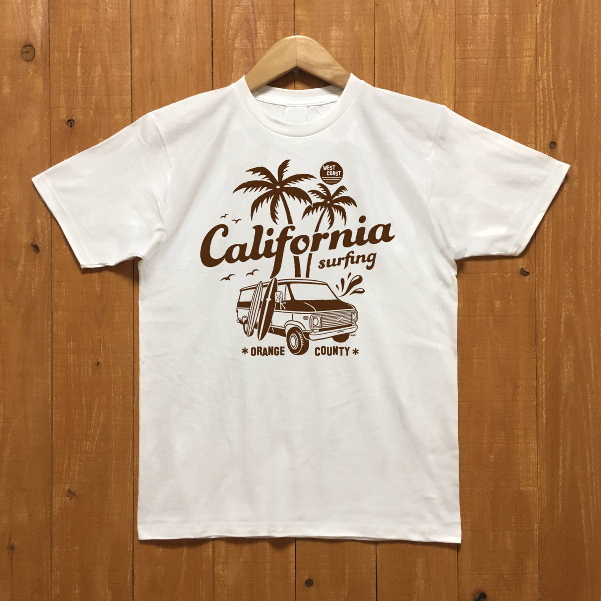 ■ CALIFORNIA Tシャツ■レディースLサイズ相当(ホワイトxブラウン)アメ車 シェビーバン シボレー カリフォルニア CHEVY