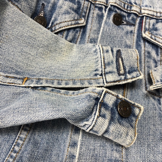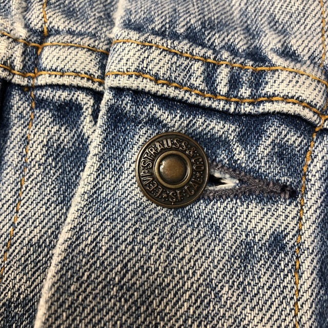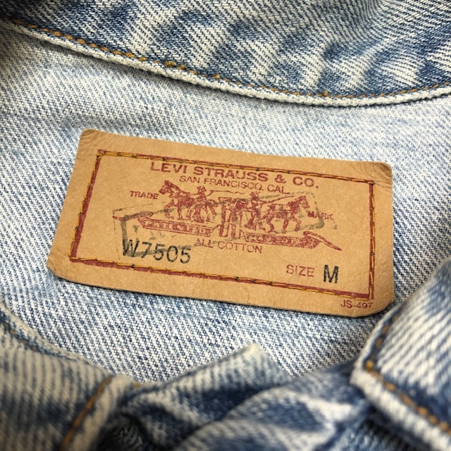 ●商品説明・・・90年代(96年製)のオールド リーバイスのW7505 デニムジャケットです。インディゴブルーがフェードしたアイスブルーでUSEDのいい風合いのデニムジャケットで、春や初夏などにぴったりな風合いです。イギリス領時代の香港製になります。素材はコットンで、オールドデニムの昔ながらのしっかりしたデニム生地です。