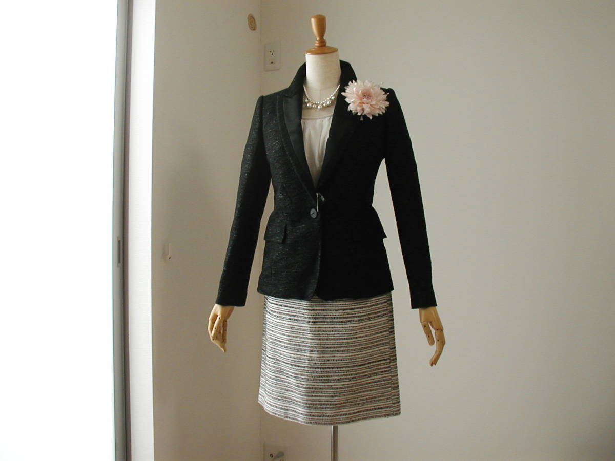 新品ミッシェルクランのセットアップ スーツ★38/9号相当/黒/ブラック/入学式/卒業式/ツイード/ジャケット/スカート/イトキン/ELLE/ofuon