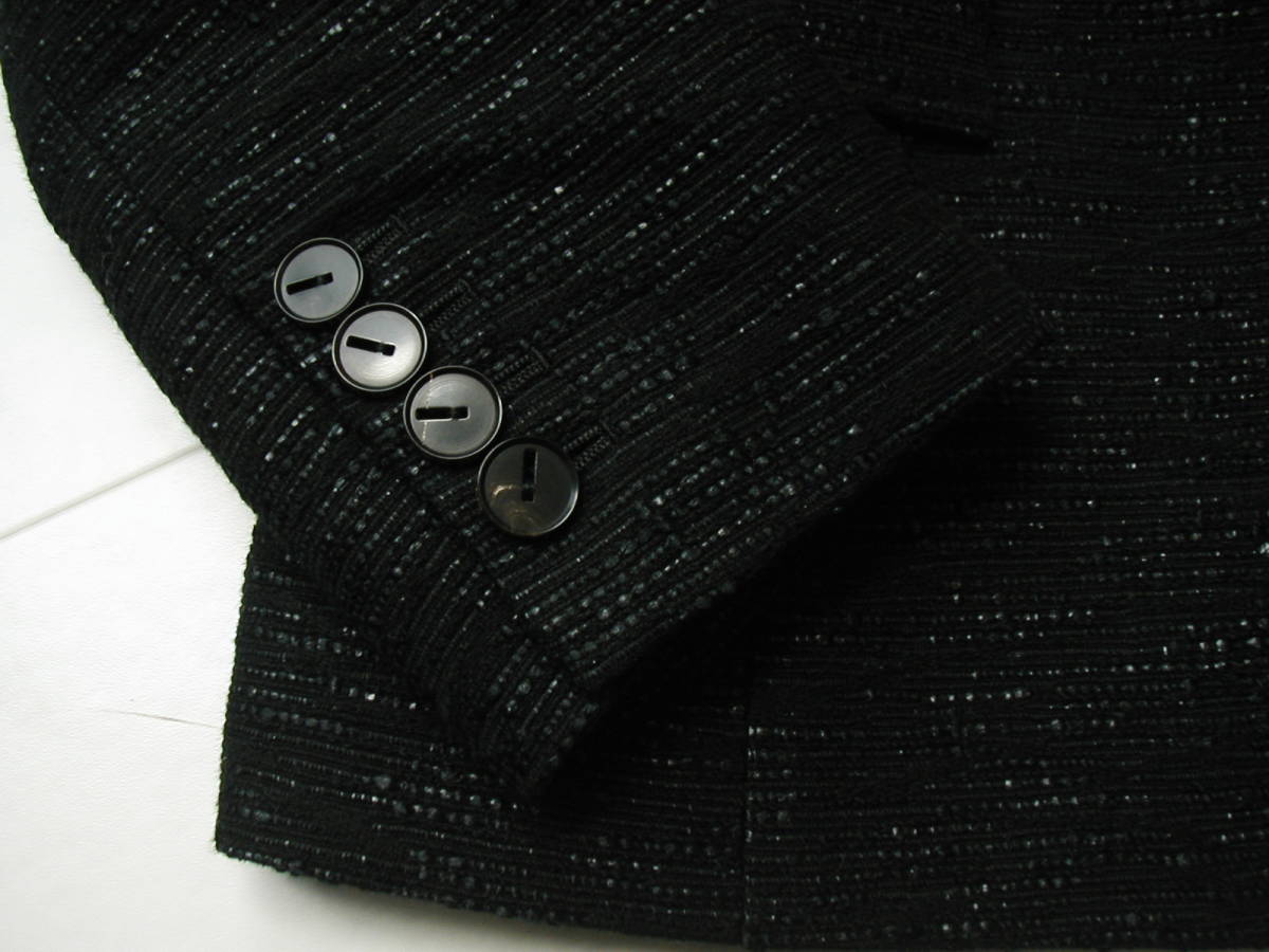 お色は黒、生地はツイードで衿の部分が一部光沢がある生地です。