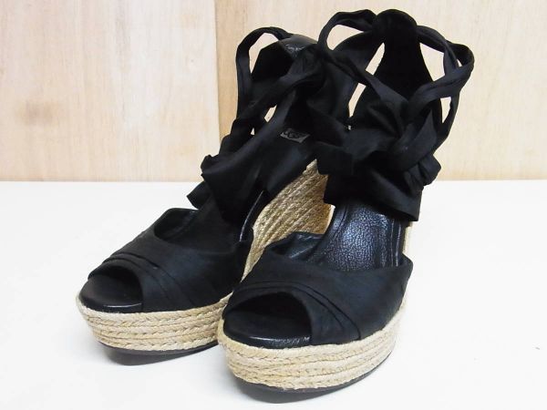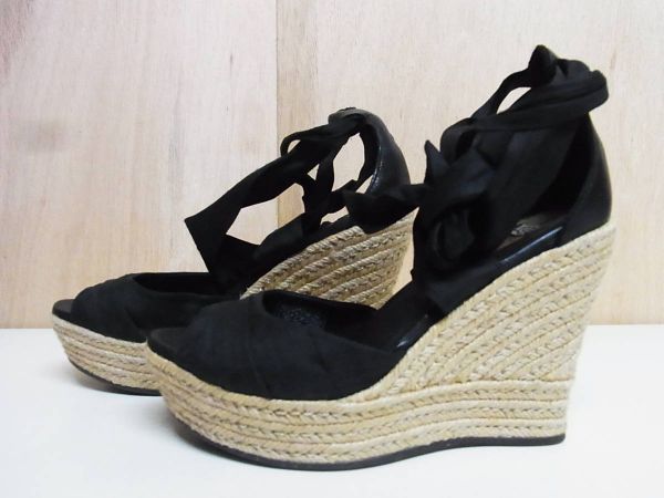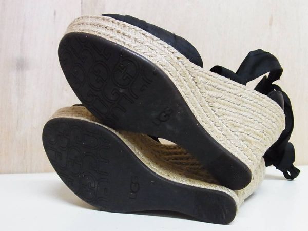 | TS 極美品 UGG AUSTRALIA アグオーストラリア エスパドリーユ レザー サンダル 黒 サイズ6 靴21 | ||