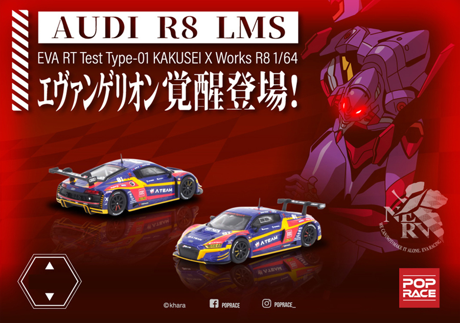 | <新品> ジェネシスカンパニー POP RACE アウディ R8 LMS エヴァ RT Test Type-01 X Works R8 覚醒 1/64サイズ | ||||||||||||||||||||