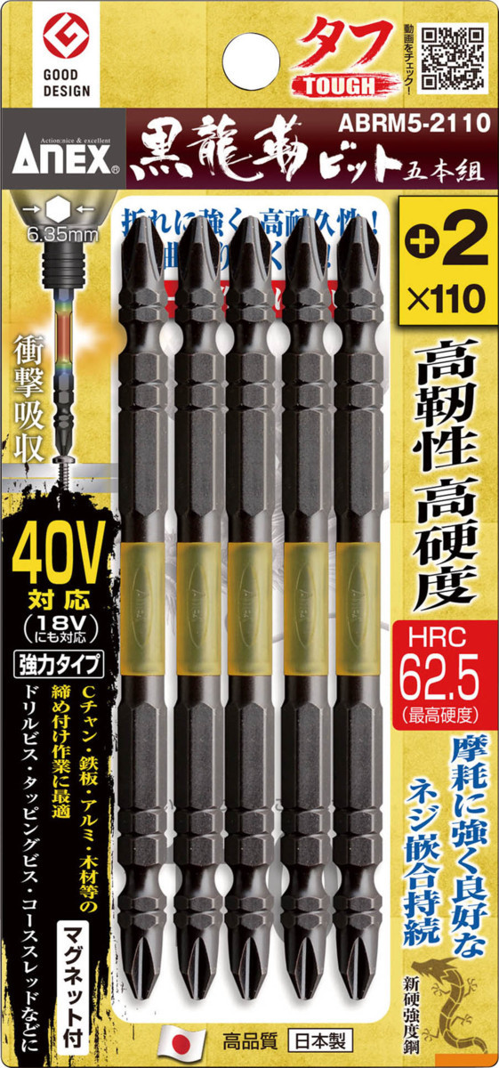 アネックス ANEX 兼古製作所 黒龍靭ビット・タフ(+)2X110 5本組 ABRM5-2110 |