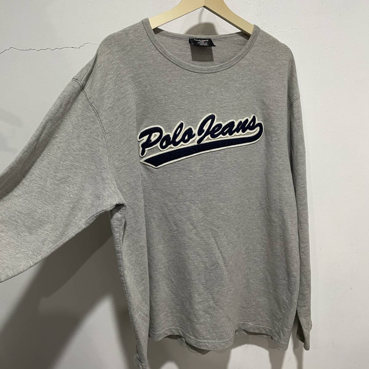 送料無料☆ポロジーンズ☆ロゴワッペンカットソー☆長袖Tシャツ☆グレー☆L☆z20☆c